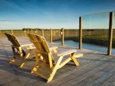 De ruime woonkamer heeft een hoog plafond en over de volledige lengte ramen (10 meter glas). Er is een comfortabele loungebank met een Jacobus-haard (hout zelf meebrengen), smart-tv en dvd-speler. Aan de grote houten eettafel kan...