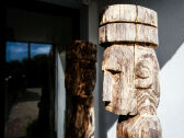 In het huis en in de tuin zijn veel exotische decoratievoorwerpen en meubels te vinden, waaronder drijfhoutsculpturen.