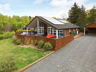 Verhoogd gelegen vakantiehuis met eigen zwembad, sauna en prachtig uitzicht op de kust en zee bij Lynderup.