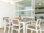 Het appartement maakt indruk met een lichte inrichting en strakke lijnen. De woon- en eetkamer met airconditioning en keuken delen een ruimte. Via de grote terrasdeur heb je vanaf hier uitzicht op de zee en het...