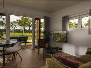 Deze cottage met hottub voor 4 personen, gelegen aan de rand van het park, combineert comfort met een prachtig weids uitzicht. Binnen vindt u de open keuken met een fornuis, koffiezetapparaat, magnetron, vaatwasser en...