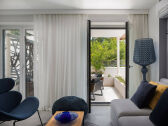 Top-AdvertentieLuxe appartement van 58 m² met designerinrichting van jachtuitruster Ladenstein, direct aan zee met fijnkorrelig strand dat geleidelijk afloopt.