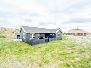 Heel dichtbij Henne Strand ligt dit mooie vakantiehuis. Het vakantiehuis is omgeven door een mooie houten terras en biedt veel beschutte hoekjes.